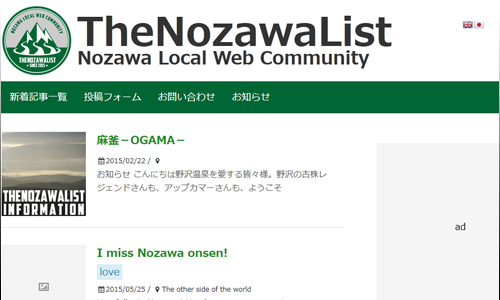 長野県の野沢温泉村のコミュニティサイトを制作しました。新規ユーザーがアカウントなしで記事を書き込める、記事を投稿できるシステムも構築しました。